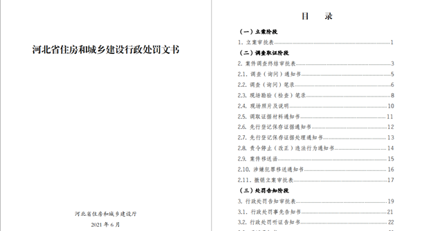 為適應(yīng)行政處罰信息化建設(shè),提升行政執(zhí)法效能,結(jié)合河北省住房城鄉(xiāng)建設(shè)綜合執(zhí)法信息管理平臺網(wǎng)上辦案系統(tǒng)操作需求,文書總體編排按照執(zhí)法辦案時間順序,以行政處罰案件的辦案流程為主線,在各個階段穿插相應(yīng)的執(zhí)法文書,實現(xiàn)執(zhí)法全過程留痕和可回溯管理,充分保障了行政執(zhí)法公示制度、執(zhí)法全過程記錄制度、重大執(zhí)法決定法制審核制度的貫徹落實。(趙子闊 陳鵬)